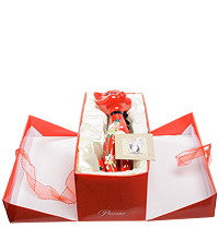 Фарфоровая фигурка "Кот" - яркий предмет интерьера. Благодаря такому вызывающему алому окрасу, от этой кошки невозможно отвести глаза. Тонкая чёрная ленточка на шее и белые цветы разбавляют цвет, не давая образу стать агрессивным и вульгарным. Порадуйте себя или близкого человека стильной дизайнерской статуэткой.