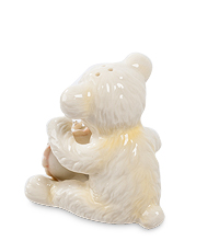 По случаю Дня Святого Валентина – отличный подарок. Маленький белый медвежонок держит в лапках бело-розовое сердечко с надписью, говорящей о любви. Но это не простая безделушка, которую можно поставить в шкаф и забыть. Присмотритесь: сердечко у медвежонка можно отобрать и насыпать в него перец. Есть и дырочки, через которые можно поперчить какое-либо блюдо прямо на столе. Да и сам медвежонок без дела не останется: у него внутри может находиться соль и через дырочки в голове можно солить блюда по вкусу. Вот такой забавный сувенир, который добавит немного соли и перчика в обещанные любовные отношения. И просто украсит любой обеденный стол.