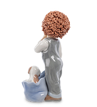 Мальчишке очень нравится играть с маленьким щенком. Четвероногий друг охотно поддерживает все придуманные игры, вот только придумывать сам ничего не умеет. Вот покатал мальчик своего приятеля по полу в мешке, к большому удовольствию щенка, а вот что дальше делать? Чем бы еще заняться – размышляет мальчик, глубокомысленно сунув палец в рот. Просто фантазии не хватает. Ничего, придумает. А щенку – все равно, лишь бы его маленький хозяин был рядом и уделял ему внимание. Подарите эту фигурку молодой семье, пожелав, чтобы у нее быстрее появился такой вот мальчишка, а потом и собачку можно будет завести.