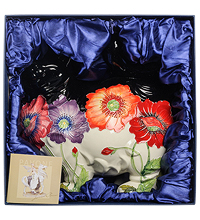 Вот вы в довольно необычной форме и можете поздравить счастливых хозяев. А тем более эта яркая, красочная кошка украсит камин любого дома. Чудные цветы на теле кошечки ее украшают и делают особенно необычной и красивой. Поэтому она понравится каждому.