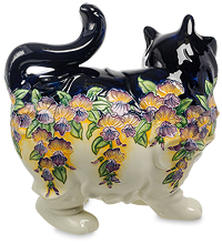Эта фигурка - просто находка для всех любителей и любительниц кошек. Фигурка изображает упитанную кошечку с поднятым хвостом, тело которой украшают цветочные рисунки. Во внешнем виде этой фарфоровой фигурки успешно и очень гармонично сочетаются светлые и темные тона, а также рисунки.