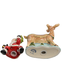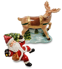 Набор соль-перец "Дед Мороз на олене" выполнен удивительно оригинально и с чувством юмора. Яркие, сочные цвета, в сочетании с искусной работой дизайнеров, буквально, оживляют этот зимний сюжет на наших глазах. Кажется, милая композиция так и заряжена позитивной энергетикой и праздничным чувством веселья. Не сомневайтесь, столь необычный и функциональный подарок будет по праву оценен каждой хозяйкой и, непременно, станет украшением любой кухни.