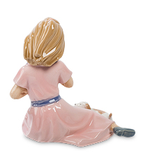 Девочка гуляла по саду и собирала цветы. Нарвала небольшой букетик и уже хотела зайти в дом, чтобы поставить их на стол, как вдруг прибежали два маленьких щенка, с которыми девочка с удовольствием играет. Букет тут же был позабыт, девочка присела на траву и начала играть с маленькими друзьями. Одного на руки взяла, второй вокруг бегает – и как за двоими сразу уследить? Школьница прекрасно проводит летние каникулы на природе, среди зелени, цветов и с веселыми приятелями-щенятами. А фарфоровая фигурка будет весь год напоминать о том, какое это было прекрасное время и как было хорошо отдыхать в деревне у бабушки.