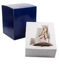 Композиция «Мама с дочерью» из фарфора изображает сцену причесывания волос девочкой, которой помогает молодая мама. Статуэтка раскрашена в пастельных тонах, и отлично подойдет в качестве элемента спального декора. Фигурка имеет высоту 24 сантиметра; ее следует расположить на видном месте, чтобы не забывать расчесывать волосы утром.