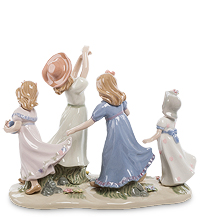 Фарфоровая композиция изображает четырех маленьких девочек, отправившихся на луг за цветами. На лугу много интересного, и каждая что-то успела разыскать. Девочки любуются находками, показывают друг другу, и веселятся, насколько позволяет веселиться безграничный запас детской энергии.