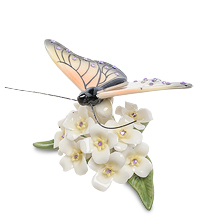 Композиция «Бабочка на цветах», входящая в коллекцию торговой марки Pavone, является фарфоровым воплощением красоты живой природы. Изделие выполнено в виде миниатюрной бабочки, которая сидит на нежном цветочном бутоне. Крылья фарфоровой бабочки разукрашены настолько выразительно и искусно, что кажется, будто бы через мгновение насекомое взмахнет ими и улетит в поисках новых цветочных бутонов. Изделие расписано яркими акриловыми красками и украшено россыпью миниатюрных стразов, что придает его дизайну особую утонченность и выразительность.
