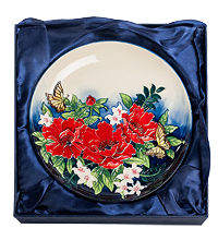 Оригинальное блюдо украсит камин или полки большого и уютного зала. Благодаря ему вы с легкостью создадите атмосферу тепла в доме. Блюдо идеально круглой формы. Светлый верх превосходно контрастирует с темным низом. Блюдо смотрится просто роскошно. Так, что, если вы желаете создать богатый интерьер, то этот предмет вам нужен, как никогда. Кроме того, оно сможет стать удивительно неординарным сувениром, подаренным таким же любителям прекрасного, как и вы сами.