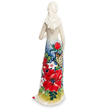 Эта фарфоровая девушка прекрасна, как сама Весна. Длинное платье барышни покрыто цветами и листьями трав. Разнообразная флора привлекла внимание крупной бабочки желтого цвета. Она тоже решила украсить собой одеяние красавицы. В руке девушка бережно держит небольшого птенца, что символизирует собой заботу.