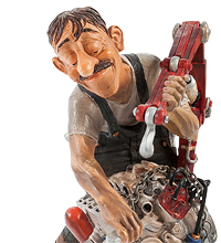 Ну, как эти автомеханики в суете и беспорядке своих мастерских умудряются чуть ли не на весу собирать двигатели и другие узлы автомашин? И при этом ничего не перепутают и сделают все так, что заведется мотор и будет исправно работать долго и надежно. Это же насколько глубокие знания устройства всех узлов автомобиля надо иметь, чтобы так работать! А куда бы мы без автомехаников делись? Пешком бы ходили, наверно… Фигурка автослесаря станет веселым и оригинальным подарком для любого работника автосервиса.