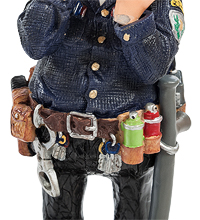 Дубинка, шлем, рация, прочные кожанные сапоги и, конечно же, очки - все эти мелкие детали дополняют внешний вид полицейского и вызывают интерес у всех, кто впервые видит эту фигурку. Особенно замечательным такой подарок станет для служителей закона, однако, его качество исполнения и красота оформления сделают его удачным приобретением для самых разнообразных людей и по любому празднику!