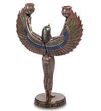 Хотя удобства, которые предоставила нам цивилизация в последние 100 лет, превратили подсвечники в декоративное излишество, трудно представить себе квартиру или дом, в котором не найдется ни одной подставки для свечей. Особенно часто подсвечники можно встретить в помещениях, оформленных под старину: в годы, когда создавалась антикварная мебель, человечество еще не слышало про электричество. Подсвечник «Исида – богиня материнства и плодородия» относится к числу предметов, которыми можно дополнить обстановку комнаты, обставленной в старинном стиле: на нем изображена героиня древнеегипетских мифов, отвечавшая за множество благ на планете.