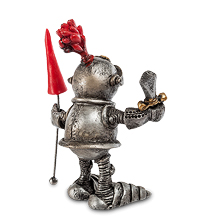 Единственный праздничный элемент в одежде – красный плюмаж на шлеме. Как только этот рыцарь такое количество железа на себе носит? Даже герб из металла приклепан толстыми заклепками. Впрочем, сейчас подведут коня, и передвигаться станет намного легче. Фигурка рыцаря – это запоминающийся подарок для мужчины, который в душе считает себя настоящим рыцарем.