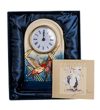 Фарфоровые часы "Колибри" удивительно нежные и выразительные. Благодаря сочетанию темно-синего и нежно-белого они смотрятся в миллион раз интересней и ярче. Часы самобытны, цветочное оформление и маленькая птичка делают их особенными. Вот что может сделать оригинальная отделка росписью с простыми на первый взгляд часами. При помощи нежных, но в тоже время ярких выразительных особенностей, они становятся произведением искусства.
