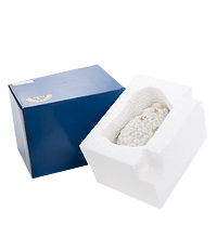 Беленькая кудрявая овечка и сама по себе красива, так ее еще и цветами украсили – нежными, розовыми, с зелеными листиками. Похоже, она сама гордится своим удивительным видом. И даже устроившись на отдых, выглядит абсолютно довольной собственной жизнью. Маленькая фигурка, на которую просто невозможно посмотреть, не улыбнувшись, станет отличным украшением в любой комнате. Поставьте ее на свой рабочий стол, и она будет постоянно напоминать: хватит работать, надо и отдохнуть, берите с меня пример, устройтесь поудобнее, и ни на что вокруг не обращайте внимание!