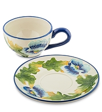 Чайная пара ''Голубые маки'' высотой 7 см.