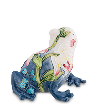 Уникальная фарфоровая статуэтка «Лягушка», удивляющая своей расцветкой. Нечасто приходится видеть лягушку в такой необычной расцветке с цветочной композицией. Фигурка сразу выделяется среди других статуэток животных сочетанием цветов и узором. Мастер оригинально сочетает форму животного с цветочной композицией, используя контрасты и подчеркивая чистоту мысли белым цветом.