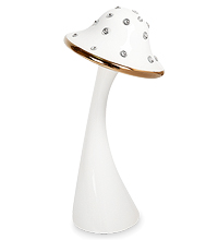 Ах, какой красивый гриб! Элегантно изогнутая ножка, кверху утончающаяся и несущая на себе супермодную шляпку, всю покрытую драгоценными блестками-стразами. Но за изысканной привлекательностью кроется угроза. Вы узнали за этой красотой портрет мухомора? Настоящий - не менее красив, но совершенно несъедобен и даже опасен. Впрочем, этот на вкус не попробовать, а смотреть на него приятно. Для любителя-грибника лучше подарка не придумать.