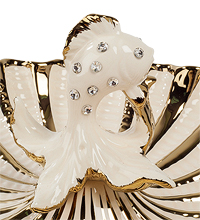 Над бело-золотой волнистой поверхностью большой морской раковины, в самом ее центре развернул свои лепестки причудливый цветок, из середины которого как бы выплывает волшебная Золотая Рыбка. Ее белое фарфоровое тело украшено сверкающими кристаллами, спинной плавник отделан золотом.
