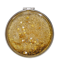 WW-113 Зеркало круглое золотистое с плавающими сердечками "Блеск"