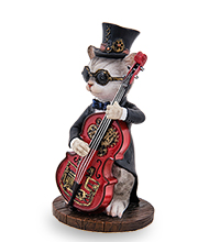 WS-1240/ 3 Статуэтка в стиле Стимпанк "Мистер Кот с контрабасом"