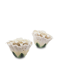Многие удивятся, увидев на обеденном столе эти две роскошные хризантемы в маленьких чашечках. А увидев, как хозяин дома пытается вытрясти хризантему из чашки прямо в тарелку с супом, кое-кто и напугается. По крайней мере, пока не поймет, что это – набор: солонка и перечница. И что вашему супу ничего не угрожает кроме улучшения вкуса и придания пикантности. Тем, кто любит красоту во всем, даже в мелочах, поставить на обеденный стол набор в виде цветов явно понравится. Ну, и удивить гостей тоже можно. Только не предупреждайте заранее, а то сюрприз не получится.