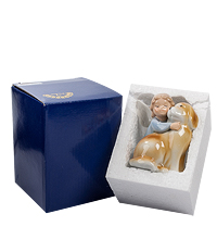 Маленький мальчик с крупным псом – большие и верные друзья. Малыш – симпатичный, как ангелочек, вот даже крылышки у него за спиной видны. К четвероногому другу он прижался, стараясь его приласкать и погладить. Пес отвечает взаимностью, нагнув голову к малышу: вот-вот лизнет его прямо в лицо. Такая дружба бывает долгой и верной: мальчик будет расти, а пес будет ему и партнером по играм, и охранником, и помощником. Кому подарить такую фигурку? Ребенку, который мечтает о собственной настоящей собаке? Нет, лучше тому, у кого собака уже есть – это будет просто портретом двух верных друзей, сделанным на память.