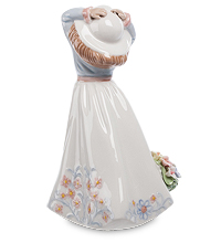 Девочка в платье с длинным подолом поставила на землю корзину с цветами, которую несла, и поправляет свою шляпку. Она вот-вот продолжит свой путь, чтобы принести вам множество цветов, видимо, только что сорванных ей в саду. Все цветы удивительно нежные, даже не верится, что каждый лепесток выполнен из тонкого фарфора. Кажется, что цветы в корзинке нашли свое продолжение на цветастом подоле платья девочки. Такая скульптурная композиция не просто украсит вашу комнату, как произведение искусства, но и будет в любую погоду, даже если за окном будет лежать снег, напоминать о жарком лете, времени красивых цветов.