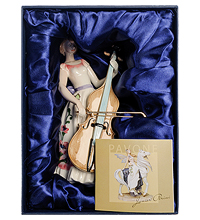 Фигура "Девушка с виолончелью" - воплощение элегантности и изысканности. Податливые выдержанные тона придают изделию благородство и лёгкость. Прекрасное оформление и роскошная роспись порадуют великолепным качеством. Статуэтка не оставит места одиночеству в вашем доме и постоянко будет напоминать о пленительных звуках играющего музыкального инструмента.