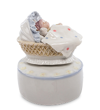 Маленькая колыбелька застелена мягкой постелью, в которой сладким сном спит малыш, устроив рядом с собой любимую мягкую игрушку. Так хорошо спится на свежем воздухе, и от ветра козырек прикрывает. Ему тепло под одеялом, и только колыбельной мелодии не хватает. Придется завести механизм – и под звуки музыки колыбель с малышом начнет вращаться, обеспечивая своему обитателю крепкий сон. Кому подарить этот символ семейного счастья? Молодым родителям, чтобы помнили, что спит ребенок, и старались не слишком шуметь. А, может быть, самому малышу – он быстро научится заводить механизм и будет сам запускать вращение под музыку.