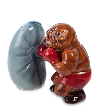 За столом будет веселее, если соль и перец насыпаны в этот забавный набор. Медвежонок тренируется, перед ним – не партнер, а боксерская груша. Но тренировка – серьезная, медвежонок – противник опытный, способный доставить неприятности. И не только боксерскими перчатками: только попробуйте потрясти фигуркой над блюдом – жгучий перец доведет вас до слез. Ну, а соль – она всегда рядом, помогает и в тренировке, и в обеде. Превосходное украшение для стола.