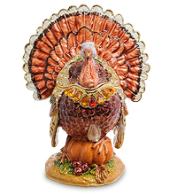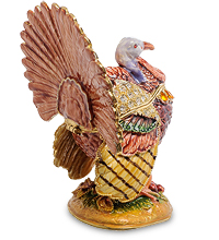 Грудка украшена ожерельем с яркими камешками – прямо царская птица! При этом фигурка имеет вполне практическое назначение: верхняя половина туловища вместе с роскошным хвостом откидывается на петле, и обнаруживается, что это – шкатулка, просто уникально декорированная под пышную птицу. Здесь можно хранить свои семейные драгоценности, а, впрочем, каждый сам решит, чем заполнить содержимое. Главное, что эта шкатулка будет не только хранилищем ценностей, но и настоящим украшением квартиры.