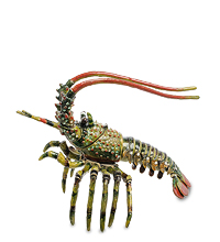 Присмотритесь – это не наш речной рак. Нет клешней, ноги полосатые, усы окрашены в красный цвет, рядом с глазами на стебельках растут маленькие рожки – это обитатель тропических морей, лобстер, известный деликатес. Но этого рака есть нельзя: он металлический.