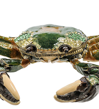 Туловище у краба раскрывается, крышка откидывается на петле и открывает полость шкатулки, в которой очень удобно хранить различные украшения и драгоценности. Хотите, чтобы такой угрожающий краб охранял ваши драгоценности? Его многие просто испугаются и даже не попытаются открыть.