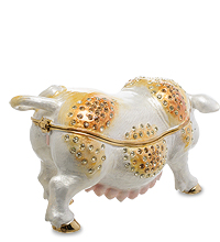 С давних времен копилки, в которые дети и взрослые собирали монетки на черный день, делали в виде свинок с прорезью в спине. Наполненную копилку разбивали и получали в пользование накопленное богатство. Эта свинка прорези в спине не имеет, зато вся спина поднимается, открываясь на петле, как крышка.