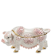 Но главная ценность спрятана – если приподнять спину, она откинется на петле и откроет внутреннюю полость – сразу станет понятно, что свинка – на самом деле шкатулочка. Вручить кому-нибудь такой подарок – вовсе не значит «подложить свинью» - этот домашнее животное издавна символизировало благополучие и достаток. Так что хранить в шкатулке можно только действительно ценные вещи!