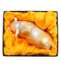 Аккуратная упитанная свинка с пятнистыми боками, усыпанными кристалликами, служит не просто украшением, хотя фигурки свиней издавна считались символами достатка и семейного благополучия, а свинья, кормящая выводок поросят, к тому же символизирует появление в семье нескольких детей.
