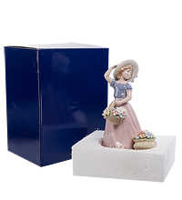 Девочка собирает цветы. Оделась так, что с цветами явно пойдет куда-то из дому – не особо парадная, но вполне приличная одежда. Длинное платье, широкополая шляпа. Рядом – большая ваза, заполненная цветами, а те цветы, которые девочка срезала, она уложила в корзиночку. Не то домой занесет и в кувшин поставит, не то кому-то в подарок отнесет. Девочка и сама прекрасна, как цветок, ее движения грациозны и непринужденны. Наверно, добрый характер ее стал таким во многом потому, что живет она в таком месте, где растет много цветов. Поставьте статуэтку в комнате и каждое утро получайте от девочки полную корзину цветов и заряд хорошего настроения на целый день.