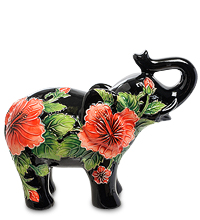 Этот слон имеет необычный для этих животных черный цвет. То ли символизирует свое происхождение из Серного континента – Африки, то ли просто является символом ночной темноты. Но какая бы тьма ни окружала слоника, все его тело заплетают яркие зеленые растения с большими листьями, и на концах веток распускаются удивительной красоты красные цветы. Контраст красного и черного велик и притягателен: на такой фигурке невозможно не сосредоточить взгляд. Как подарок, слоник хорош еще и тем, что слоны считаются добрыми талисманами, символами уюта и семейного благополучия. Так что за благосостояние семьи можно будет не беспокоиться – этим слоник займется!
