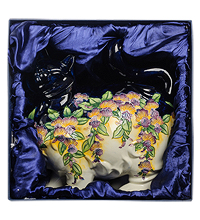 Эта фигурка - просто находка для всех любителей и любительниц кошек. Фигурка изображает упитанную кошечку с поднятым хвостом, тело которой украшают цветочные рисунки. Во внешнем виде этой фарфоровой фигурки успешно и очень гармонично сочетаются светлые и темные тона, а также рисунки.