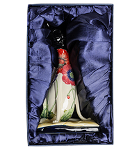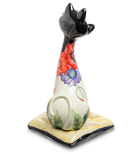 Фигурка безумно милого кота станет вашей любимой фигуркой. Не только красочный, но и забавный кот настолько привлекает энергетикой, которую он излучает, что просто глаз от него нельзя оторвать. Что в нем привлекает, так это его улыбка, выпирающие щечки и тонкие, как нежные веточки лапки. Черные, белые и яркие по своим краскам цветы – это сразу же бросается в глаза.