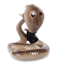 Если вы соберетесь подарить такую фигурку своему начальнику, не забудьте напомнить ему, что среди многочисленных свойств змеи имеется большая мудрость. И пожелайте быть действительно мудрым и проницательным боссом. Эта роскошная змея, распустившая капюшон и уставившаяся на окружающих пронзительным взглядом, действительно изображает босса. Кончиком хвоста она обвила недокуренную сигарету, на хвосте, как на запястье руки, надеты часы, на шее – манишка с бабочкой. Ну, вылитый начальник, строгий, но, надеемся, справедливый. Пусть стоит на столе в кабинете, помогает запугивать сотрудников.