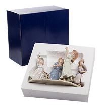 Статуэтка имеет длину 26 сантиметров, и может украсить книжный шкаф или верхнюю полку в спальне. Фигурку детей можно подарить многодетным родителям, или воспитателю детского сада, как признание важности его нелегкой профессии.