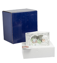 Фарфоровая волшебная книга - стоит открыть ее на любой странице, и перед вами окажется сам Дед Мороз, зимний волшебник, и где-то в глубине, за плоскостью страницы, настоящий сказочный лес с уютным домиком и двумя маленькими детьми, сооружающими перед домиком снежную бабу. Дед Мороз для этого снега не пожалел.
