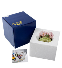 Маленькая цветочная композиция составлена из ярко-красных с белыми прожилками цветов гибискуса, помещенных в горшочек, как будто свернутый из зеленых листьев. Сочная зелень и алый цвет лепестков создадут яркое пятно в любом интерьере, оживят его и привлекут внимание. Такой букет вполне можно планировать в качестве долговременного дизайнерского аксессуара – он, хоть и не пахнет, с отличие от свежих цветов, но при этом и не завянет никогда, на многие годы сохранит свою свежесть и красоту. Если его подарить, он будет всегда напоминать о том, кто это сделал. И никто не мешает вместе с фарфоровым букетиком подарить еще и настоящий.