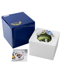 Вазочка, в которой разместилась эта цветочная композиция, как будто свернута из зеленых листьев. И цветы в ней напоминают живые гвоздики, причем весьма причудливых сортов – белые с розовыми краями, бело-голубые, белые с сиреневым. Эта композиция хороша тем, что цветы, в нее входящие, не завянут через неделю, а останутся такими же яркими и свежими на вид. Тоненькие лепестки выполнены из фарфора – даже не верится, что это не живые цветы. Поставить такую подборку гвоздик в комнате – значит на весь год впустить атмосферу весны. И зимой весеннее настроение лишним не будет!