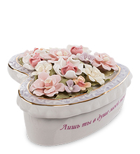 Пожалуй, лучше и красноречивее подарка любимой женщине не придумать. Это одновременно и объяснение в любви – недаром же форма шкатулочки в виде сердечка, и пожелание радости – что еще может символизировать крышка, усыпанная яркими цветами. Это – шкатулка для самых сокровенных вещей, украшений, драгоценностей, да и просто памятных и дорогих сердцу вещичек. И еще надпись по боку шкатулки – настоящее признание в любви!
