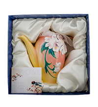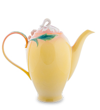 Удивительно нежно совмещены в этом изделии теплая цветовая гамма, такая уместная на кухне, и незатейливый, но бесконечно изящный узор, словно окутывающий чайник нежными стеблями и благоухающими цветами. Такая вещь может стать центром кухни, гордостью хозяйки, радостью для гостей и домочадцев.
