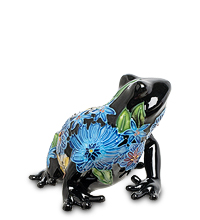 Синие цветы и зеленые листья на черной основе делают ее неординарной и экстравагантной. С давних веков лягушка считалась символом богатства, успеха и благополучия. Поставив фигурку на видном месте в доме, она будет притягивать положительную энергетику. Такому подарку будут очень рады ваши друзья, коллеги и близкие.