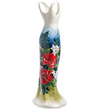Ваза настольная «Платье» – удивительно оригинальный подарок, который сразит наповал любую женщину. Утонченность линий, контраст белого и цветного – все это придает ей особую изящность. Настоящим украшением вазы является ее декор, которым занимались художники с талантом. Чего только стоят цветы – они как будто живые. Здесь все в меру, нет ничего лишнего. Все детали превосходно сочетаются и создают единый ансамбль.