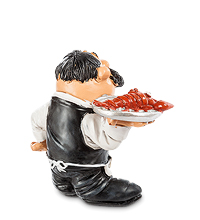 Классическая одежда – белая рубаха с черным жилетом и элегантной бабочкой, прилизанные волосы и роскошные усы. С первого взгляда видно, что это – официант. И во взгляде – готовность выполнить любое поручение. Рака заморского хотели – пожалуйста. Ну, чем не шеф-повар или даже хозяин ресторана? Главное лицо – и заказ у вас примет, и на стол его подаст. На чем ресторан держится? На официанте! Такой подарок любой официант оценит по достоинству.